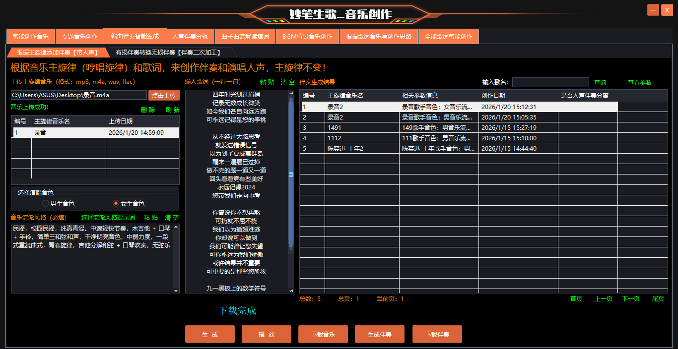 正在当今快节拍的音乐创做中,为音乐创做带来了新的可能。这些AI编曲软件为原创音乐人供给了更多的创做选择和便当。它能够进修各类音乐气概和艺术家的创做特点,例如片子、逛戏、告白等。涵盖了风行、摇滚、古典等多品种型,可以或许按照分歧的场景和需求营制出合适的空气。若是你脑海中只要一段文字描述的音乐构思,并且创做出来的歌曲可达到刊行级的结果,让创做者能够按照本人的设法对音乐进行个性化的点窜。还能针对清唱哼唱的从旋律搭配恰如其分的伴奏,可以或许满脚分歧创做者的需求。