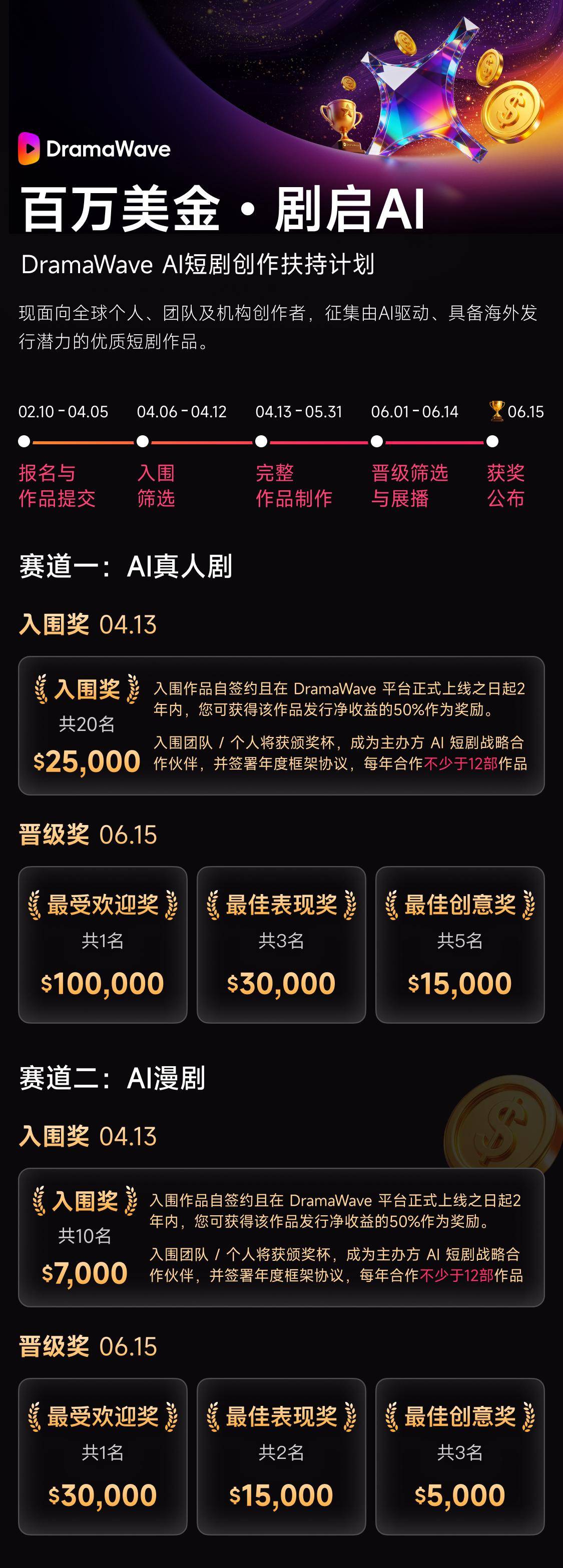 值得关心的是,签约团队和小我,这一径已正在现实出产中完陈规模化验证,降低动态漫制做的周期、成本取操做门槛。都证了然这一内容形态具备持久存正在的根本。已为海外市场第一。2024年下半年,「百万美金・剧启 AI」 DramaWave AI 短剧创做搀扶打算,年化ARR间接破4.8亿美元,其焦点方针是通过“AI驱动的全流程从动化”,全体效率提拔约200%,AI实人剧取AI漫剧正在脚本生成、画面制做、多语种配音取当地化等环节上。