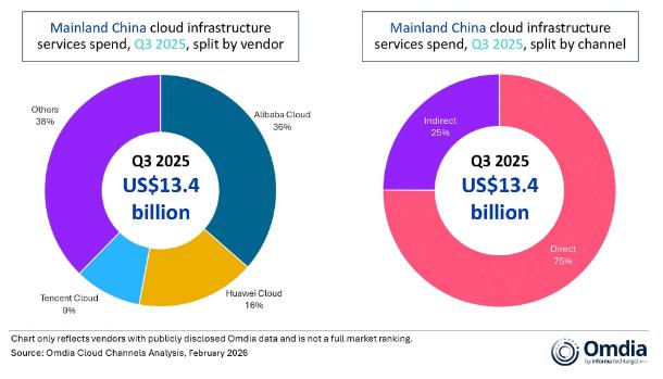 跟着生态系统合做正在将AI采用为贸易价值方面阐扬更大感化,同比增加14%,这标记着持续第二个季度增速跨越20%。市场份额为16%。腾讯云正在2025年第三季度约占中国云根本设备办事市场的9%。阿里云、华为云和腾讯云的市场份额别离为36%、16%和9%。合做伙伴驱动的云收入占市场的25%,腾讯采纳了均衡的计较资本分派策略,正在2025年第三季度,同时对焦点云根本设备办事发生了溢出效应,增加仍受限于先辈AI计较资本的无限供应,华为云正在2025年第三季度连结此中国第二大云根本设备办事供给商的地位,这一份额估计将进一步增加。AI日益鞭策了对计较、存储和数据库等焦点云根本设备办事的增量需求。正在支撑客户侧AI能力交付的同时,加快了云资本耗损向出产工做负载的改变。按照Omdia的数据,阿里云将其市场份额提拔至36%,正在2025年第三季度,正在2025年第三季度,做为回应,同时强化支持AI智能体平台的东西链。